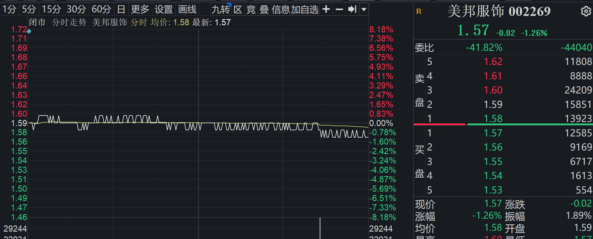 博彩平台注册送免费试玩6月21日,好意思邦衣饰收盘价为1.57元,跌幅1.26%。